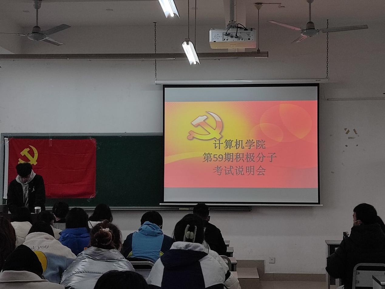 本网消息(文/杨安珂 图/唐鑫)2021年12月8日12:30计算机学院学生党支部在十教10215举行了第59期积极分子考试说明会,本次会议由王兰西同志主持,第59期与往期拟积极分子参与。