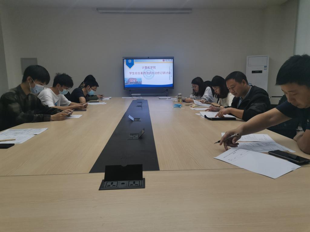 本网消息(文/图 曾倩)5月26日上午,计算机学院在10106会议室召开2022年学生综合素质测评办法修订研讨会。会议由学院党委副书记孟源主持,教务办代表、班主任代表、各年级学生代表及全体辅导员参加研讨。